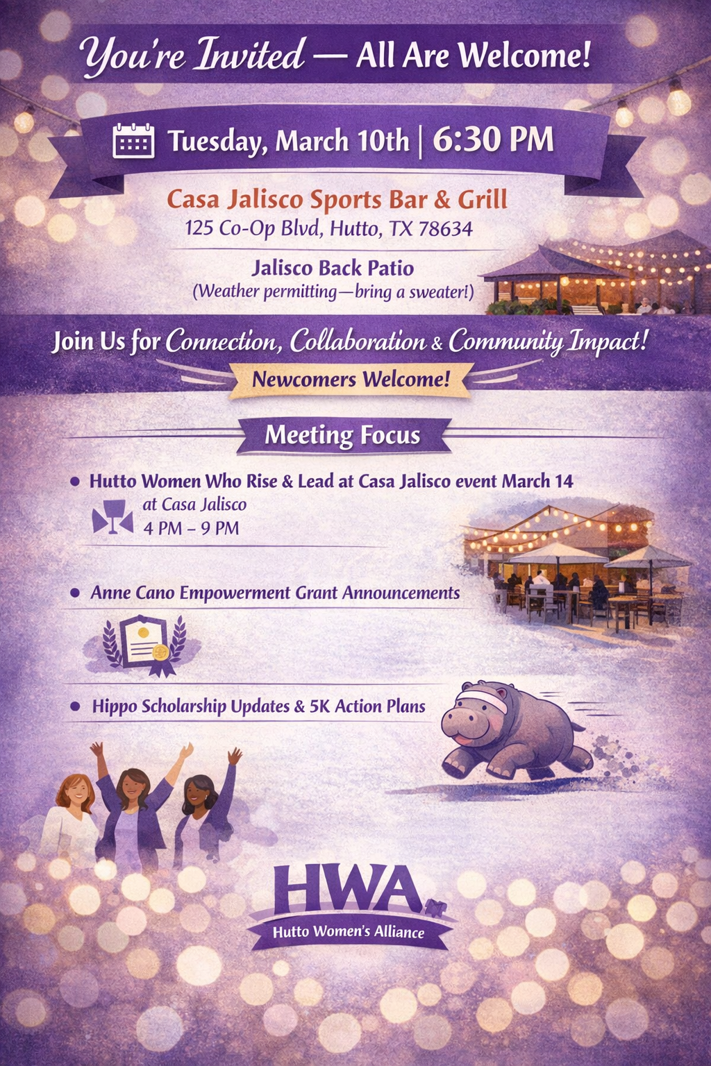 Hutto Women Who Rise & Lead at Casa Jalisco event March 14 4pm-9pm